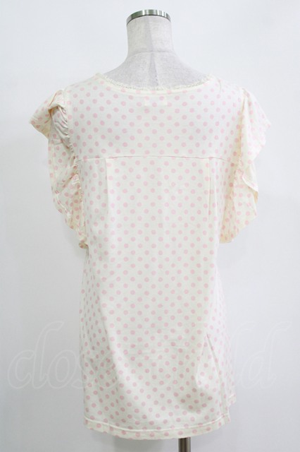Emily Temple cute / フリルノースリーブカットソー オフ×ピンクドット H-25-11-03-056-ET-TO-KB-ZH