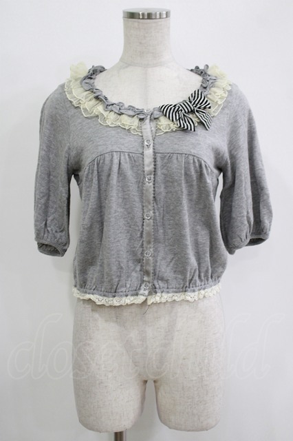 Emily Temple cute / チュールフリルショートカーディガン グレー H-25-11-03-052-ET-TO-KB-ZH