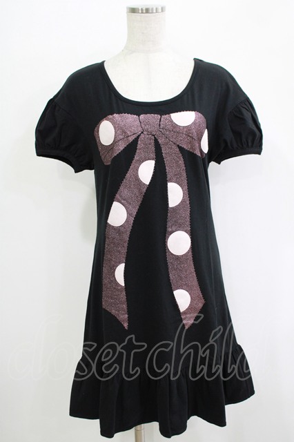 Emily Temple cute / ドットリボンプリントカットソーワンピース 黒 H-25-11-03-030-ET-OP-KB-ZH