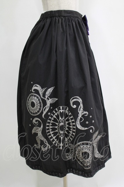 gouk / サクラリボンブローチ付袴スカート 黒 H-25-11-03-004-GO-SK-KB-ZH