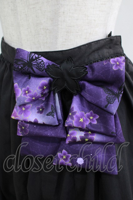 gouk / サクラリボンブローチ付袴スカート 黒 H-25-11-03-004-GO-SK-KB-ZH