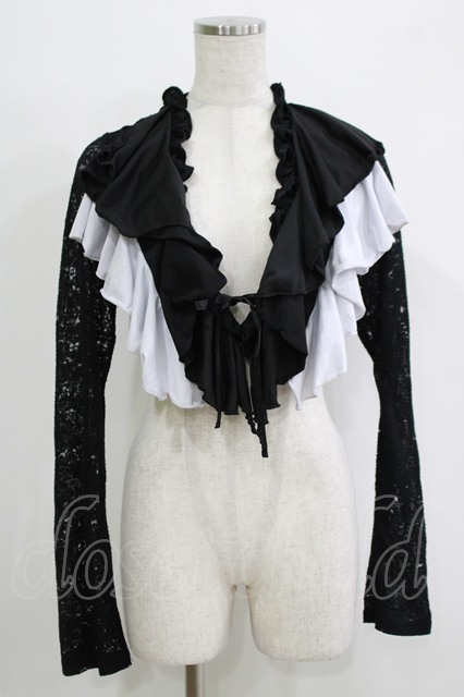 NiNE. / 異素材切替フリルボレロ 黒×白 H-25-11-03-074-PU-TO-KB-ZH