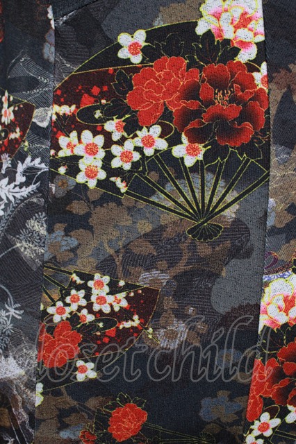 Ozz oneste / 和柄切替チャイナノースリーブワンピ 黒 H-25-11-03-008-OO-OP-KB-ZH [戻る]