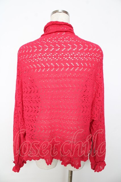 PINK HOUSE / 透かし編みボレロ風カーディガン F レッド(ダークピンク) Y-25-10-31-024-LO-TO-AS-ZY [戻る]