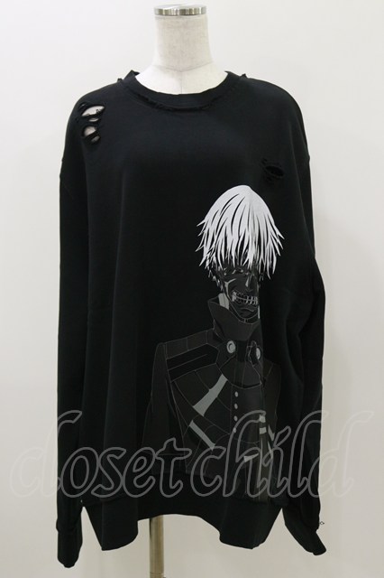 QOOZA / 東京喰種×QOOZA金木研 ダメージスウェット ブラック H-25-11-04-038-PU-TO-KB-ZH