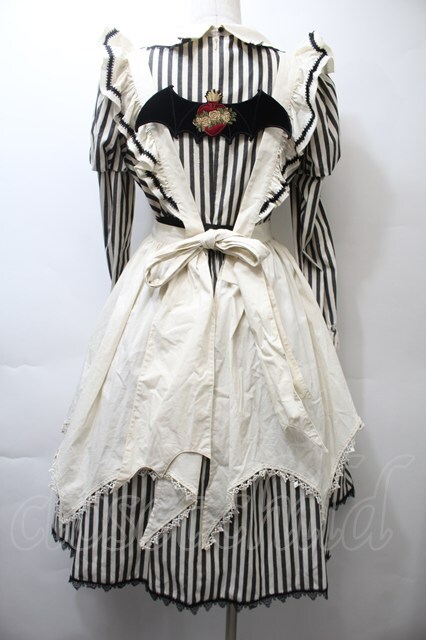 仲夏物語 / エプロン付きストライプワンピース オフx黒 S-25-10-26-035-EL-OP-AS-ZS
