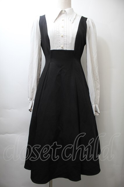 EAT ME / ピンタックブラウスレイヤードワンピース 黒x白 S-25-10-26-044-LO-OP-AS-ZS