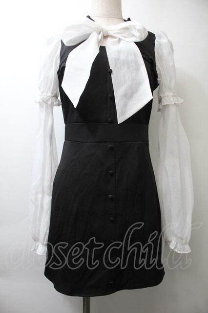 Bubbles / チュール袖ワンピース 黒x白 S-25-10-26-045-CA-OP-AS-ZS