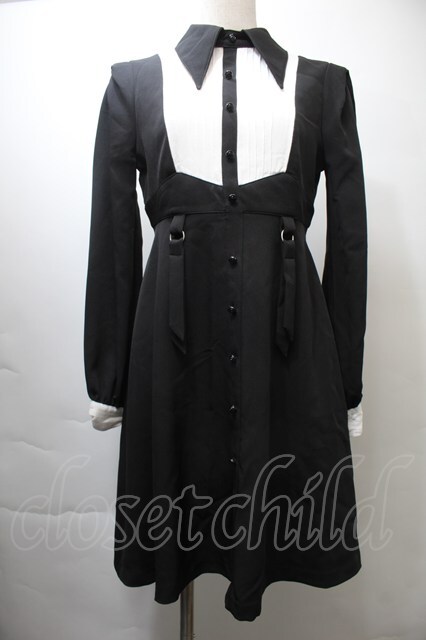 EAT ME / ピンタックブラウスレイヤードワンピース 黒x白 S-25-10-26-047-LO-OP-AS-ZS [戻る]