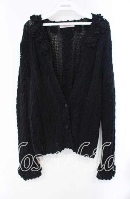 WONDERFUL WORLD / ローズモチーフニットカーディガン ブラック O-25-10-28-075-LO-TO-IG-OS