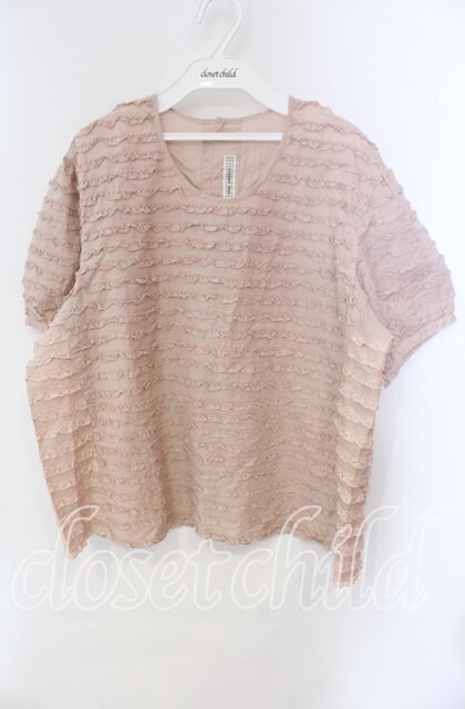 KANEKO ISAO / ピコフリルボーダー半袖ブラウス【お直しあり】 ピンク O-25-10-28-071-EL-BL-IG-OS