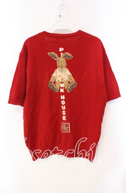 PINK HOUSE / ラビット半袖カーディガン アカ O-25-10-28-072-LO-TO-IG-OS