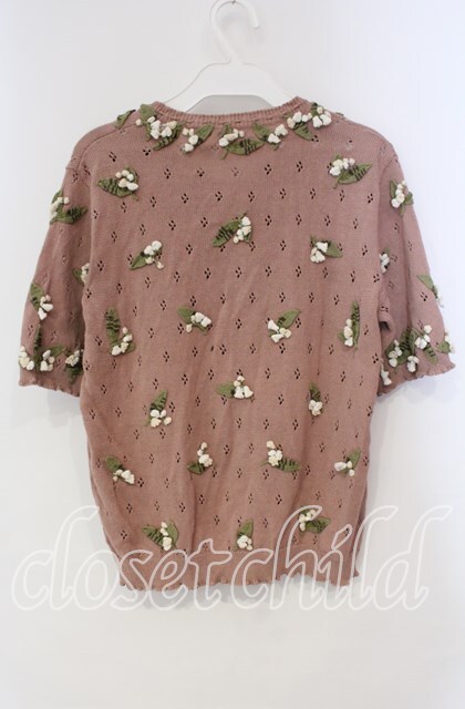 KANEKO ISAO / モチーフ付き半袖カーディガン ピンク O-25-10-28-069-EL-TO-IG-OS