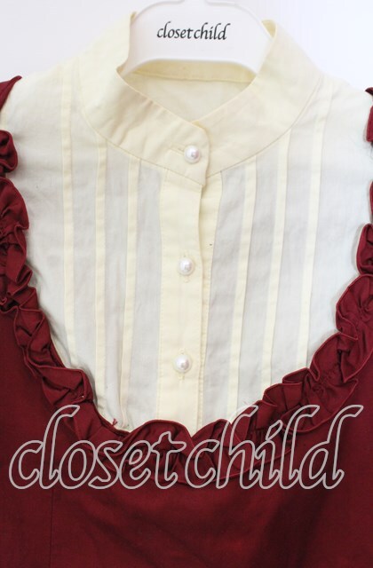 Pina sweetcollection / ヨーク襟フリルシャーリングプルブラウス ワイン×生成り O-25-10-28-088-LO-BL-IG-OS