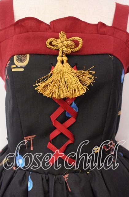 axes femme kawaii / 彼岸の白狐会柄ジャンスカ M クロ O-25-10-28-014-AX-OP-OW-OS