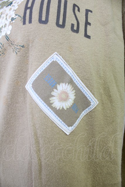 PINK HOUSE / ミモザ風ブーケプリント&雛菊ワッペンカットソー L ブラウン T-25-10-30-009-LO-TO-SA-ZI