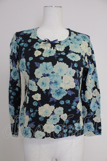 PINK HOUSE / 薔薇ブーケプリントカットソー 黒X青 T-25-10-30-013-LO-TO-SA-ZI [戻る]