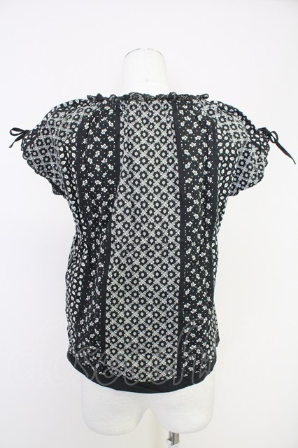 PINK HOUSE / パッチワーク風プリント半袖ブラウス 黒X白 T-25-10-30-016-LO-BL-SA-ZT [戻る]
