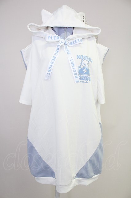 NOEMIE / ねこ耳配色オープンショルダージャージ 白Xサックス T-25-10-30-021-LO-TO-SA-ZI