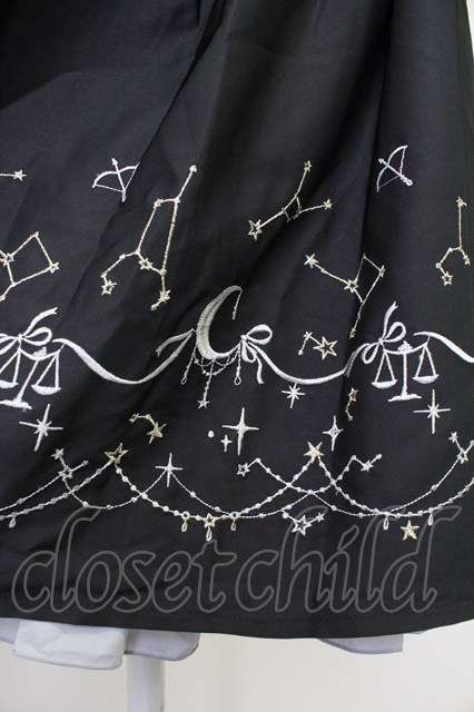 axes femme POETIQUE / 星座刺繍ビットデザインスカート 黒 T-25-10-30-040-AX-SK-SA-ZT