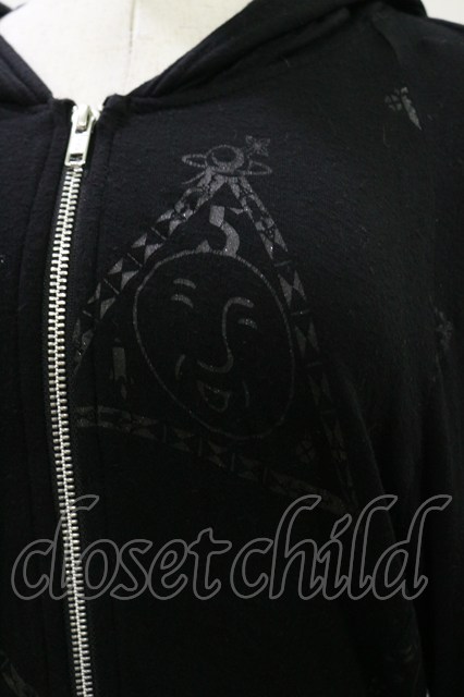 NAOTO SEVEN / プリントロングZIPパーカー 黒 H-25-10-26-025-HN-TO-KB-ZH