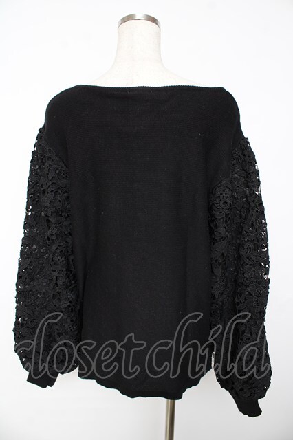 axes femme / 袖レース刺繍デザインニット L 黒 Y-25-11-01-055-AX-TO-SZ-ZY