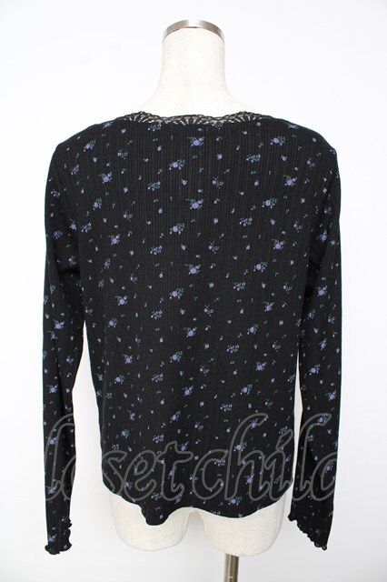 axes femme / 小花プリントリブインナー M 黒 Y-25-11-01-057-AX-TO-SZ-ZY