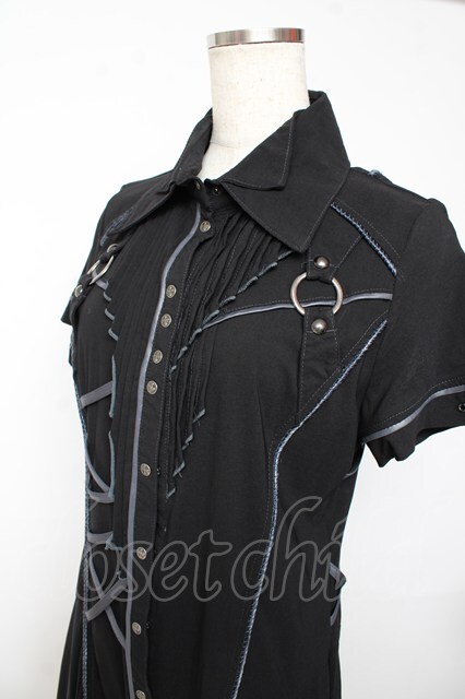 Ozz Croce / アシンメトリーシャツワンピース 黒 Y-25-11-01-116-OO-OP-SZ-ZY