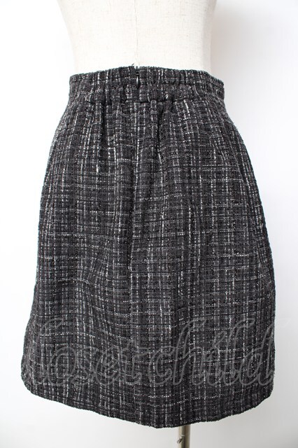 Ank Rouge / フロントビジューツイードミニスカート M 黒 Y-25-11-01-135-CA-SK-SZ-ZY