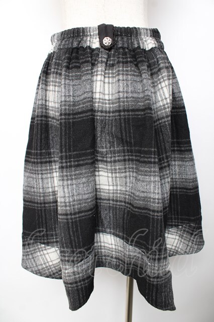 axes femme / シャギーチェックイレヘムスカート M 黒 Y-25-11-01-156-AX-SK-SZ-ZY