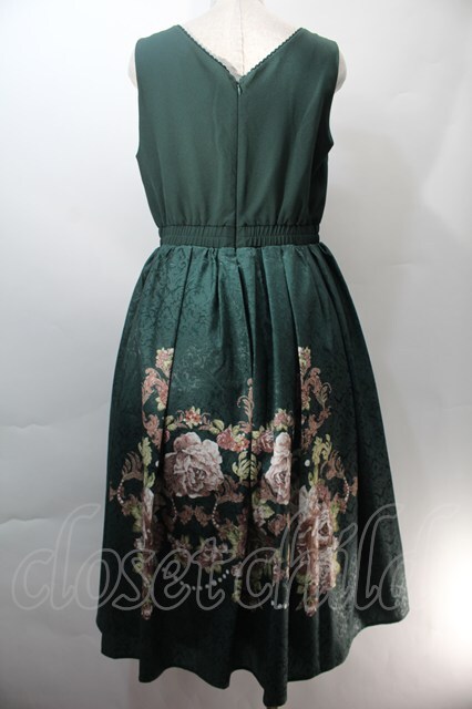 axes femme NOSTALGIE / 薔薇パネル柄ジャンスカ グリーン S-25-10-29-045-AX-OP-AS-ZS