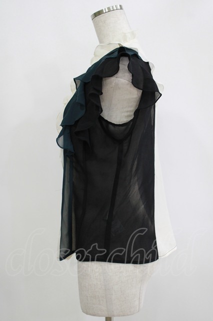 axes femme / 配色フリルノースリブラウス M オフ/ブラック/グリーン H-25-11-06-051-AX-BL-NS-ZH
