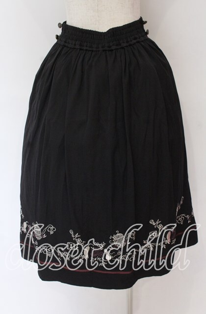 axes femme / リボン付猫刺繍スカート F クロ O-25-10-29-121-AX-SK-OW-OS