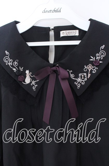 axes femme / リボン付き猫刺繍ブラウスプルオーバー F クロ O-25-10-29-045-AX-BL-OW-OS [戻る]