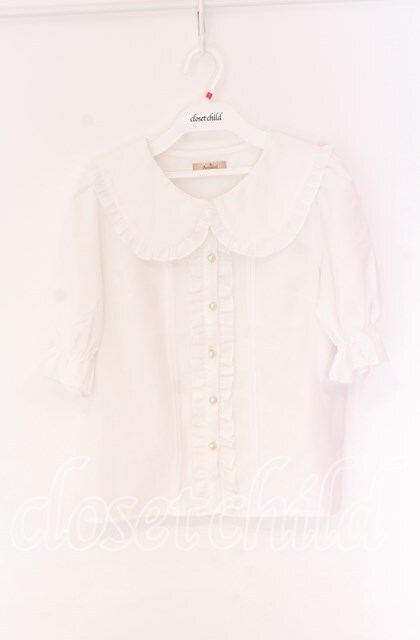 Amavel / フリル半袖ブラウス シロ O-25-10-29-100-CA-BL-IG-OS