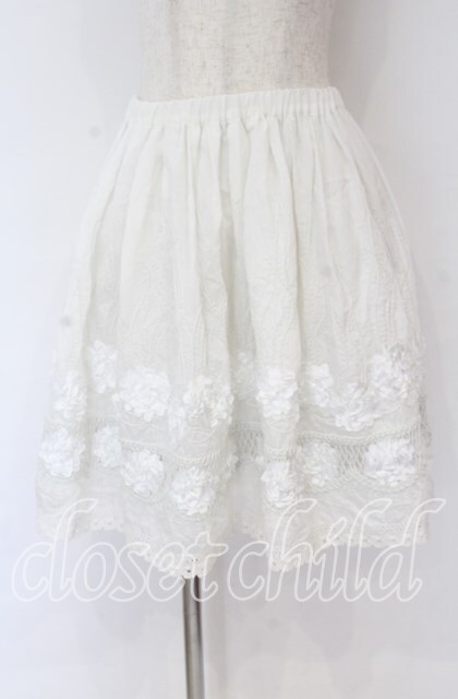 BPN / フラワー配色スカート M ホワイト O-25-10-29-110-GO-SK-IG-OS