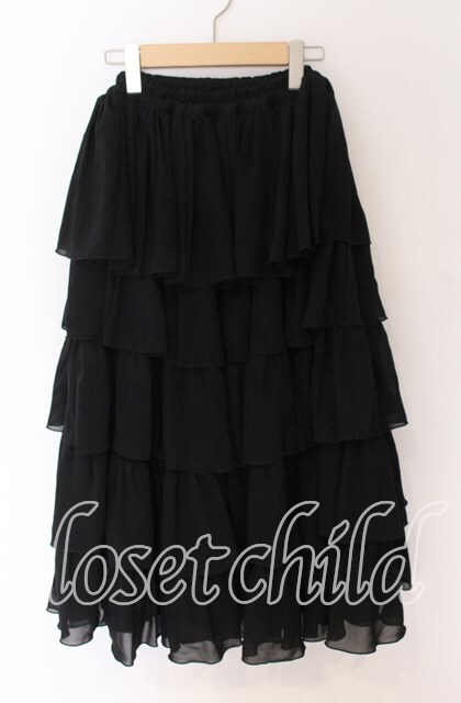 MARBLE / 5段フリルロングボリュームスカート ブラック O-25-10-29-114-GO-SK-IG-OS