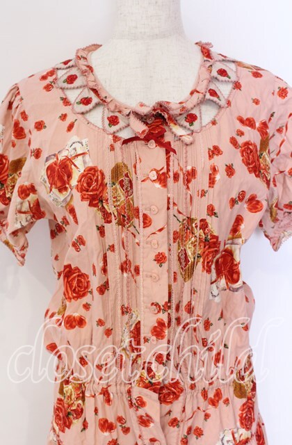 PINK HOUSE / ハートローズ柄半袖ワンピース ピンク O-25-10-29-055-LO-OP-IG-OS
