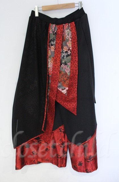Qutie Frash / ラップ付き和柄バギーパンツ レッド×ブラック O-25-12-03-046-QU-PA-IG-ZT1208B