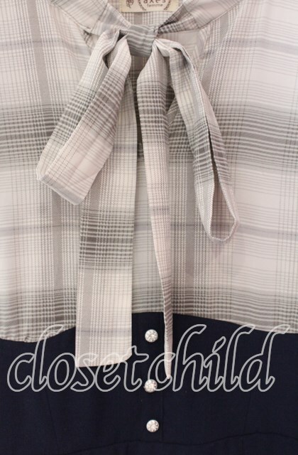 axes femme / ボウタイドッキングワンピース ネイビー O-25-10-30-070-AX-OP-IG-ZT051