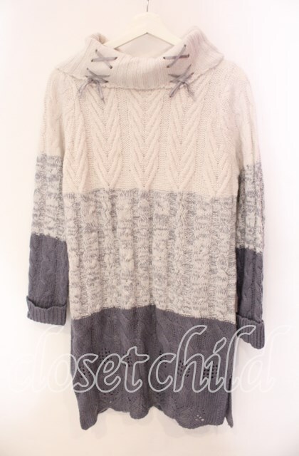 axes femme / 編上グラデーションニットワンピース M グレー O-25-10-30-044-AX-OP-OW-OS