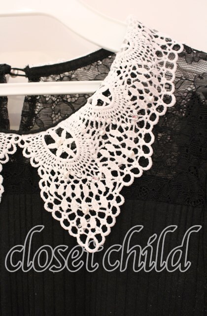 axes femme / レース襟ビスチェ切替プルオーバー クロ O-25-10-30-071-AX-TO-IG-OS