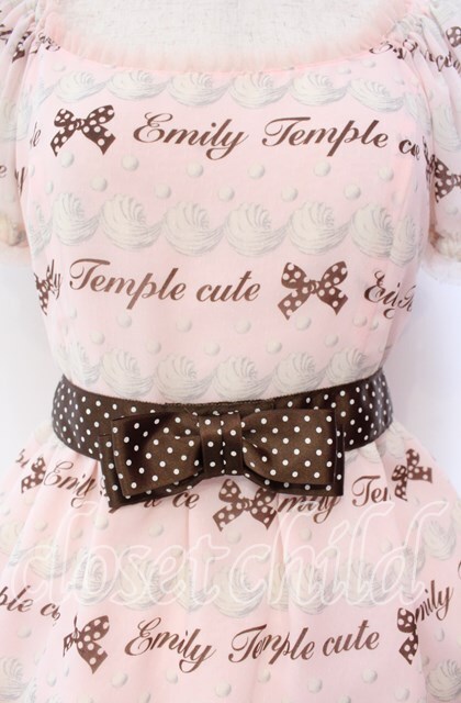 Emily Temple cute / ジョーゼットロゴ&クリームワンピース ピンク O-25-10-30-014-ET-OP-OW-OS