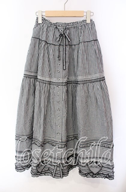 PINK HOUSE / ハートワッペン付きギンガムスカート クロ O-25-10-30-032-LO-SK-OW-OS