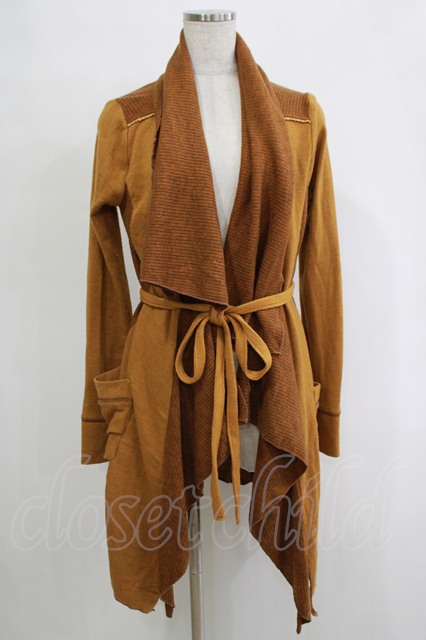Ozz oneste / リブ切替ロングニットソーカーディガン 茶 H-25-11-07-069-OO-TO-KB-ZH