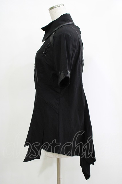 Ozz Croce / ダブルカラー刺繍ブラウス 黒 H-25-11-07-053-OO-BL-KB-ZH