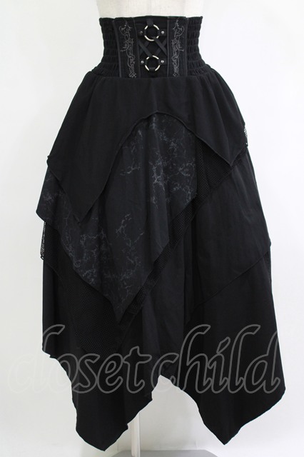 Ozz Croce / 異素材イレギュラースカート 黒 H-25-11-07-010-OO-SK-KB-ZH