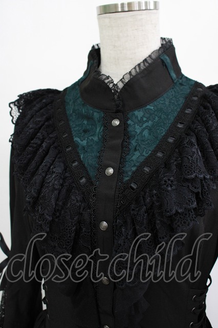 Ozz oneste / Dark Wizard 姫袖ワンピース ブラック×グリーン H-25-11-07-008-OO-OP-KB-ZH [戻る]