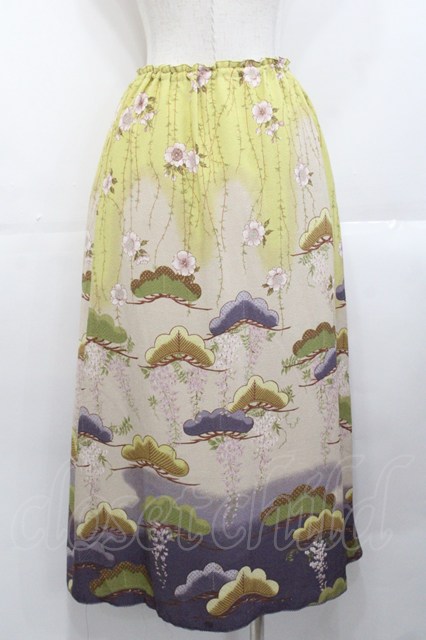 WONDERFUL WORLD / 和柄スカート グリーン I-25-10-29-093-LO-SK-SA-ZI
