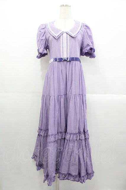 Maria pipi / セーラーカラーチェックレースドレス ラベンダー I-25-10-29-047-EL-OP-SA-ZI